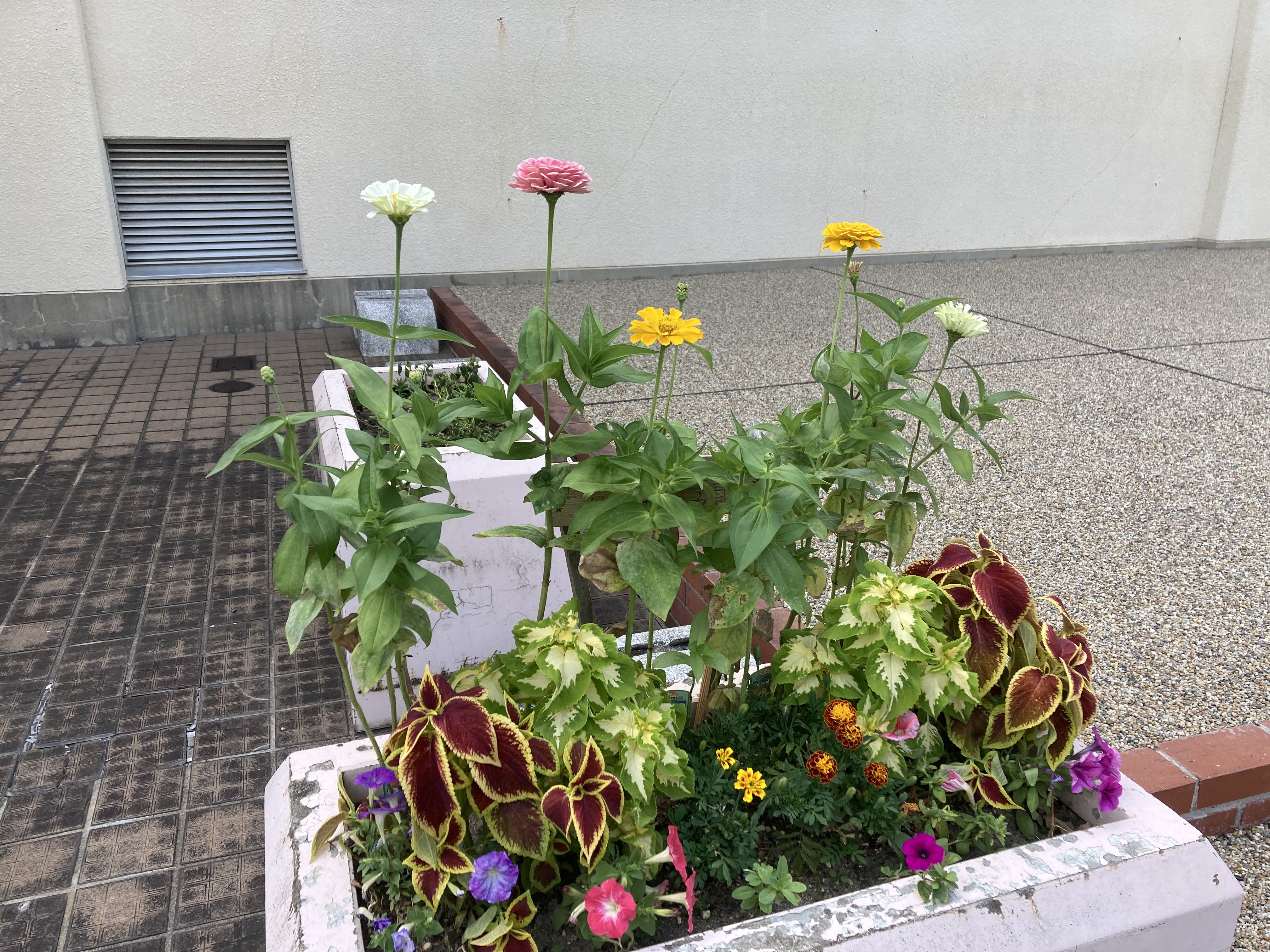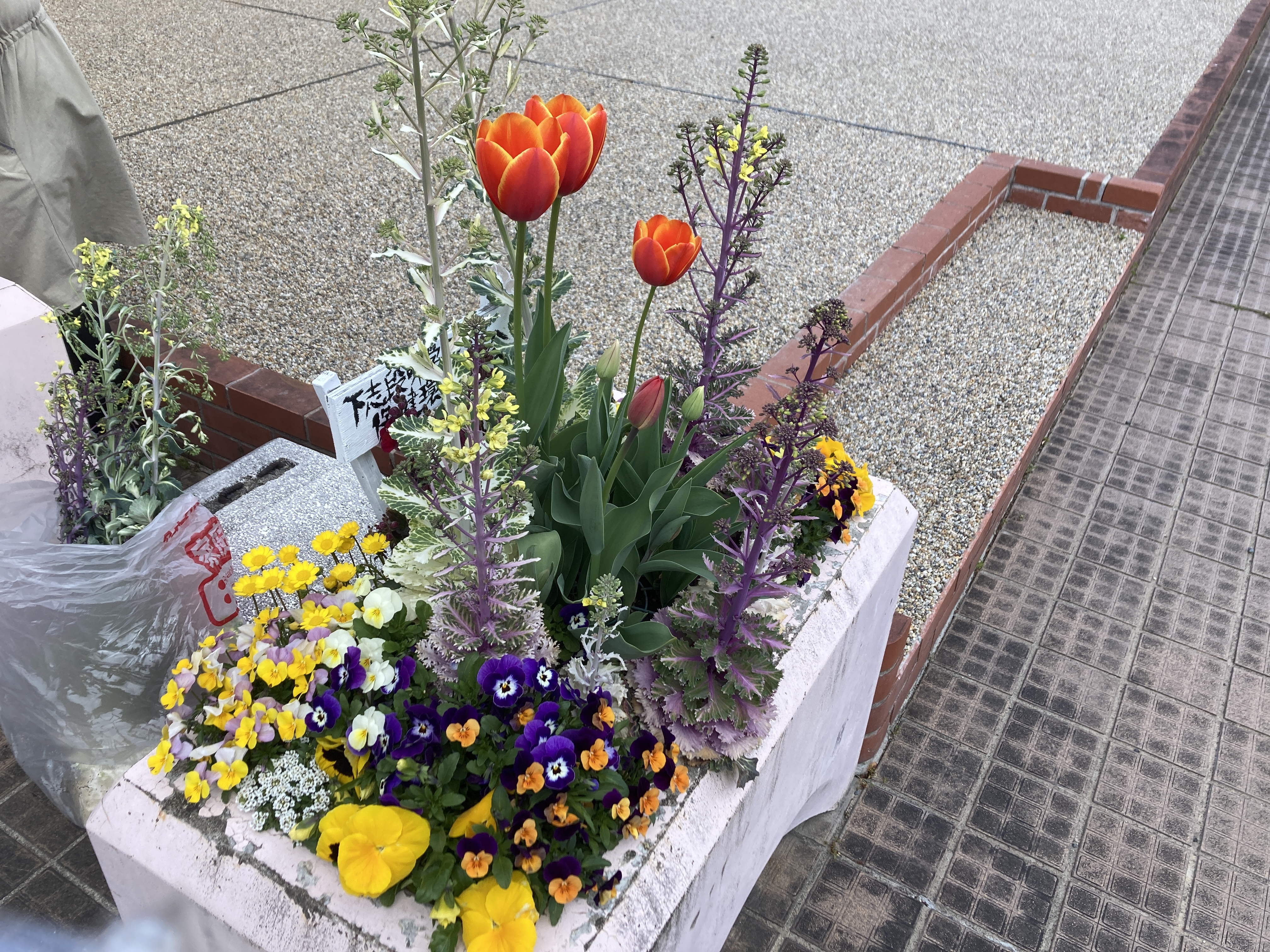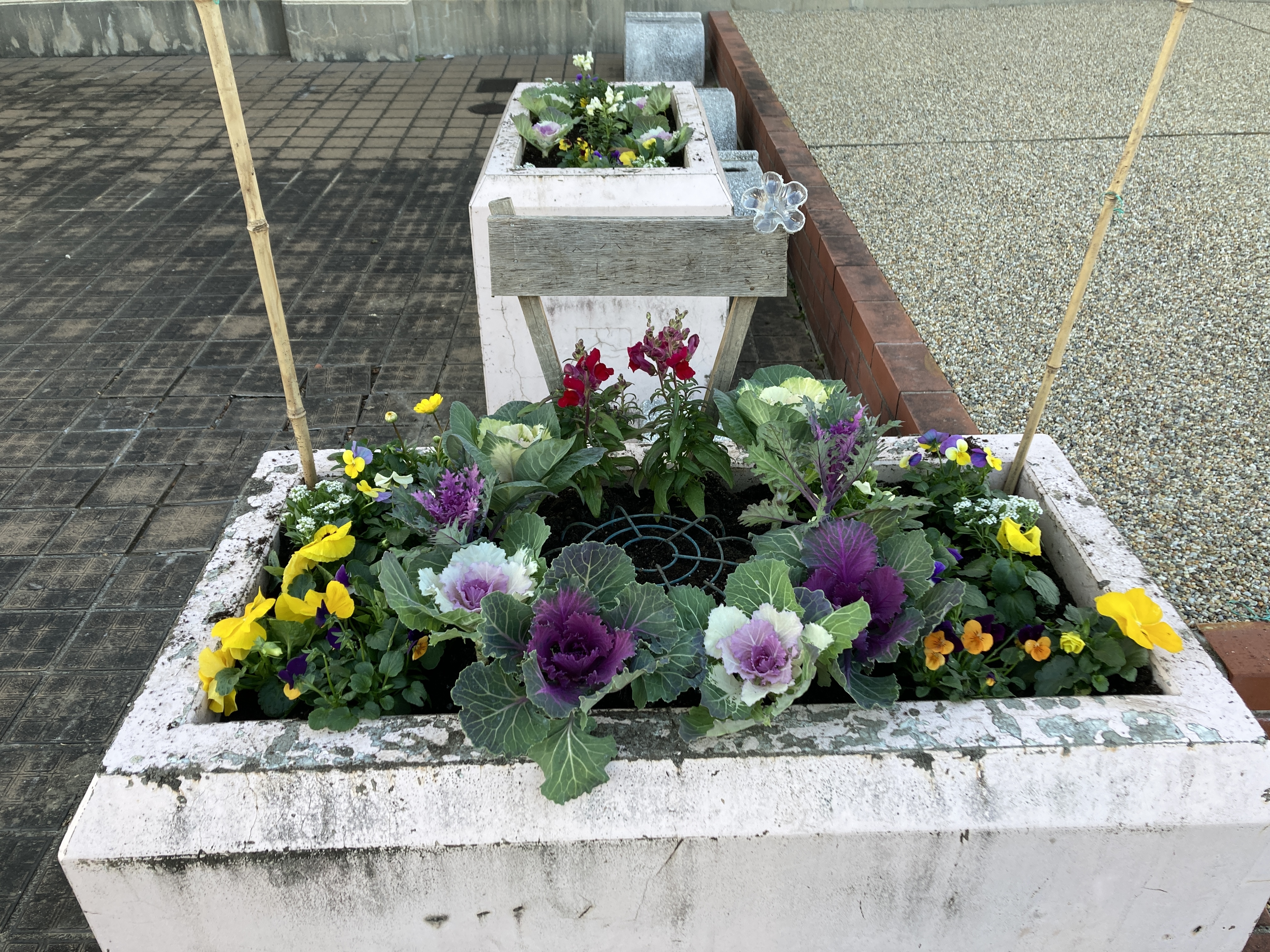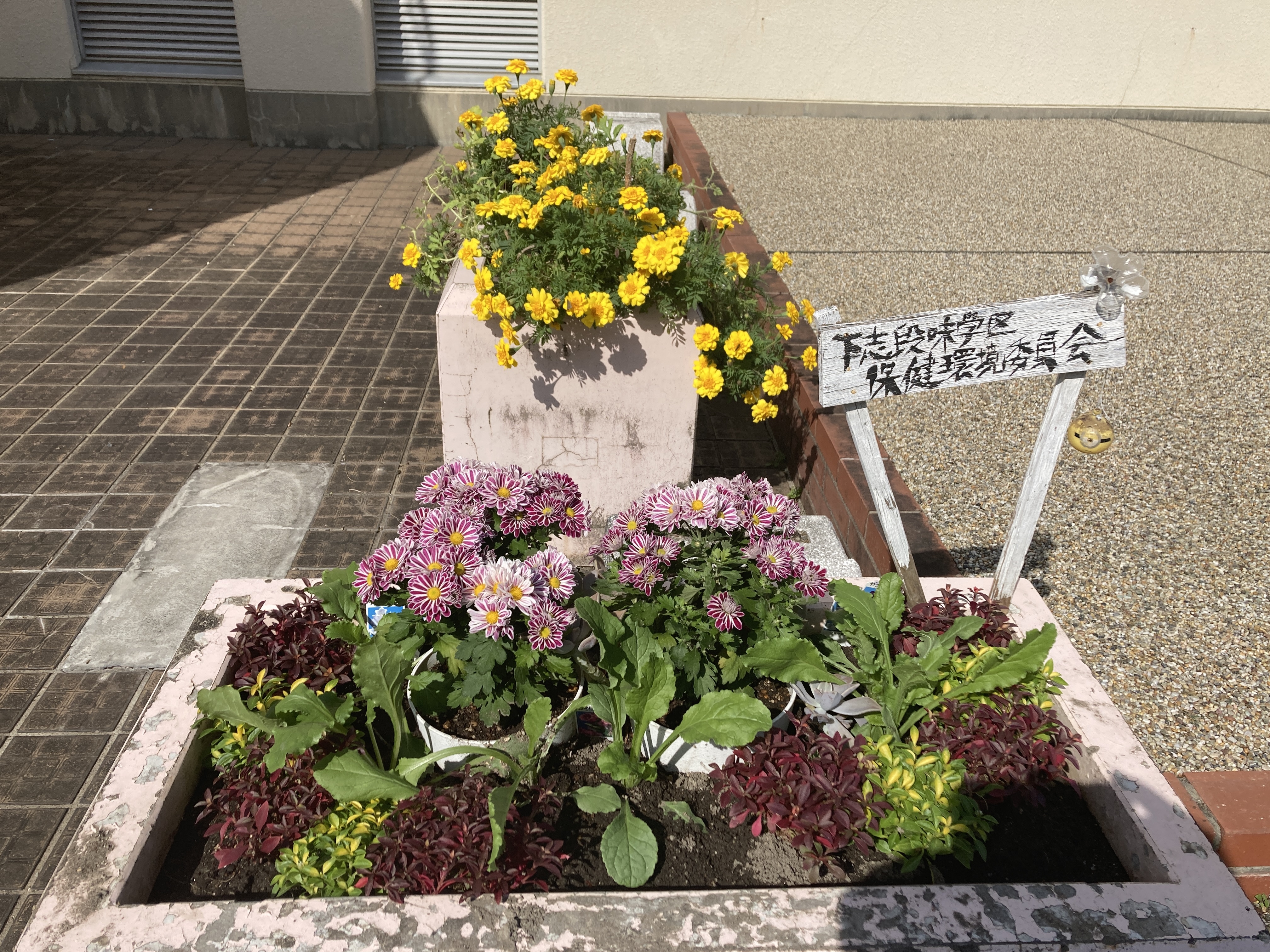 コンクリートプランターに、下志段味学区が花を提供してくださいました。