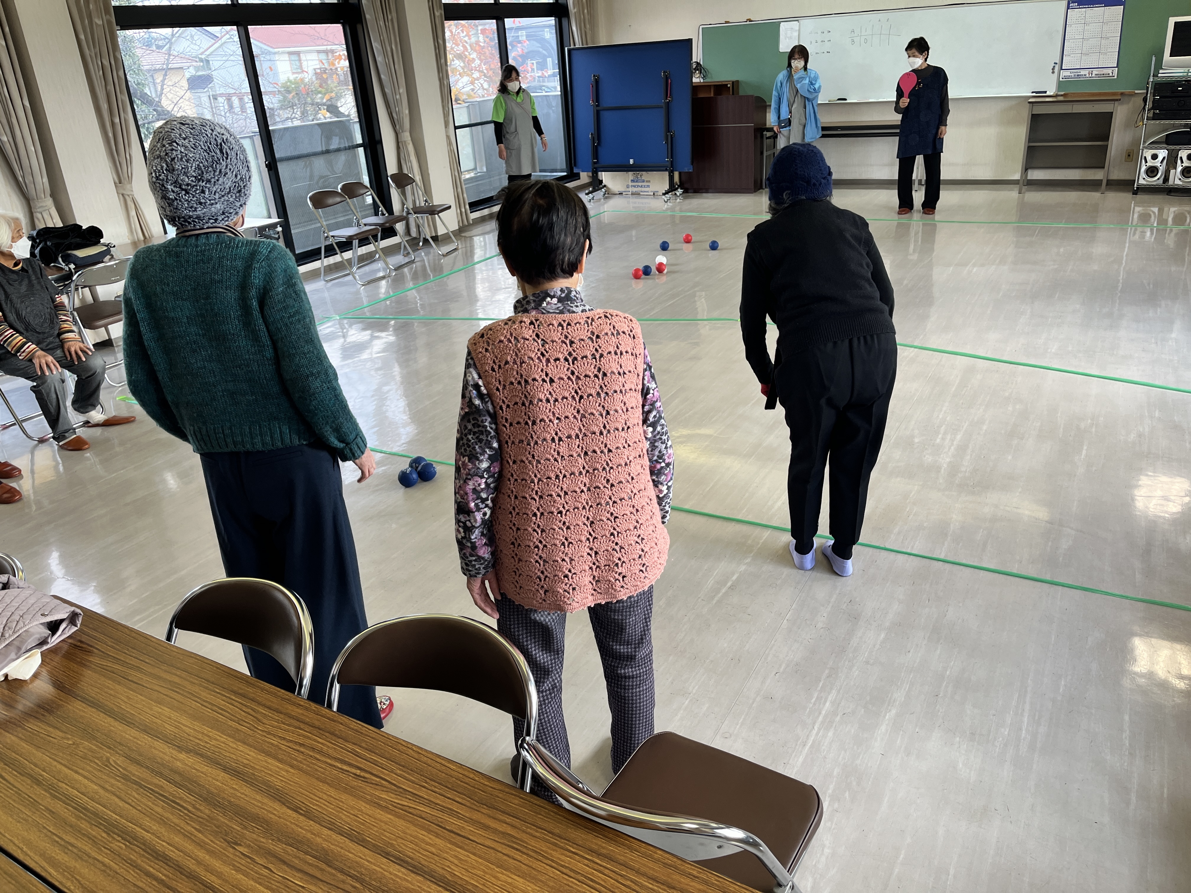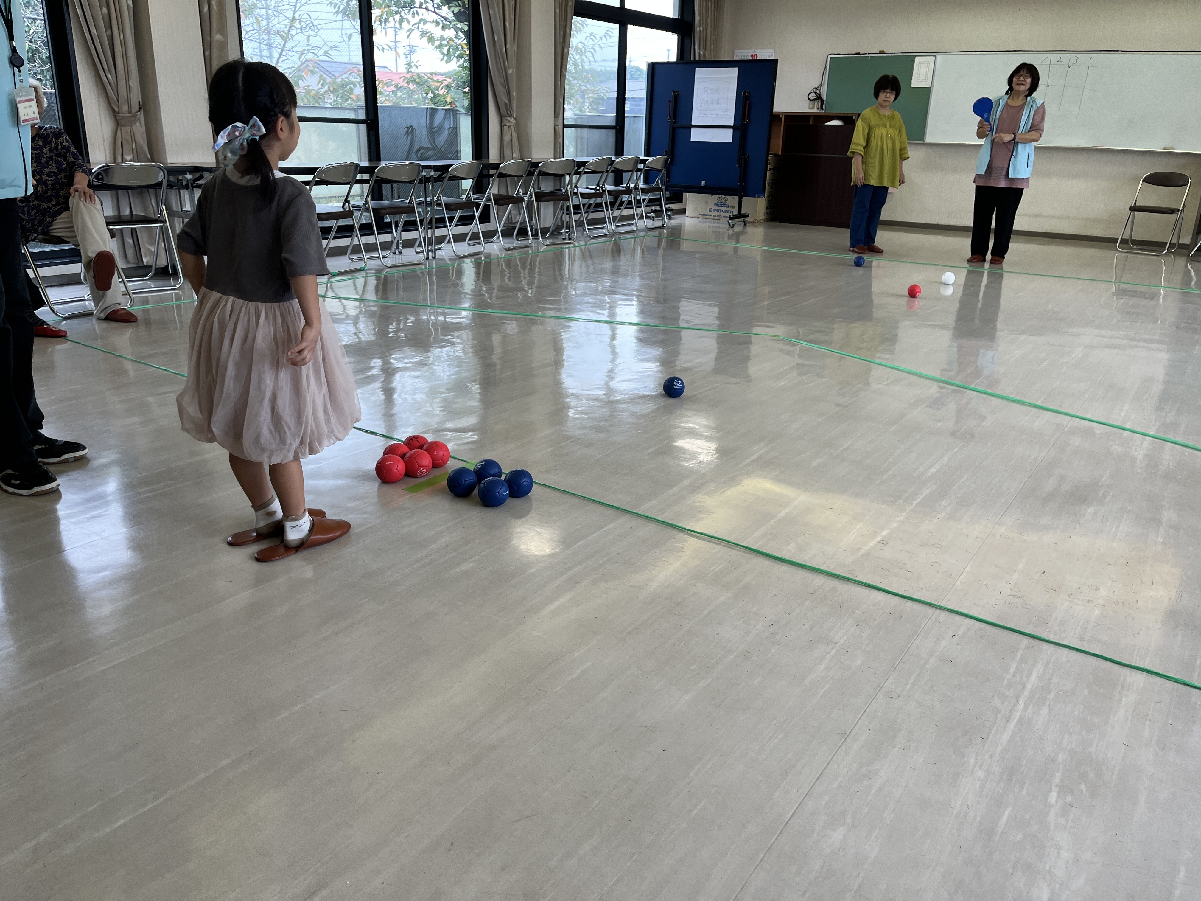 集まってボッチャの体験をしていました!