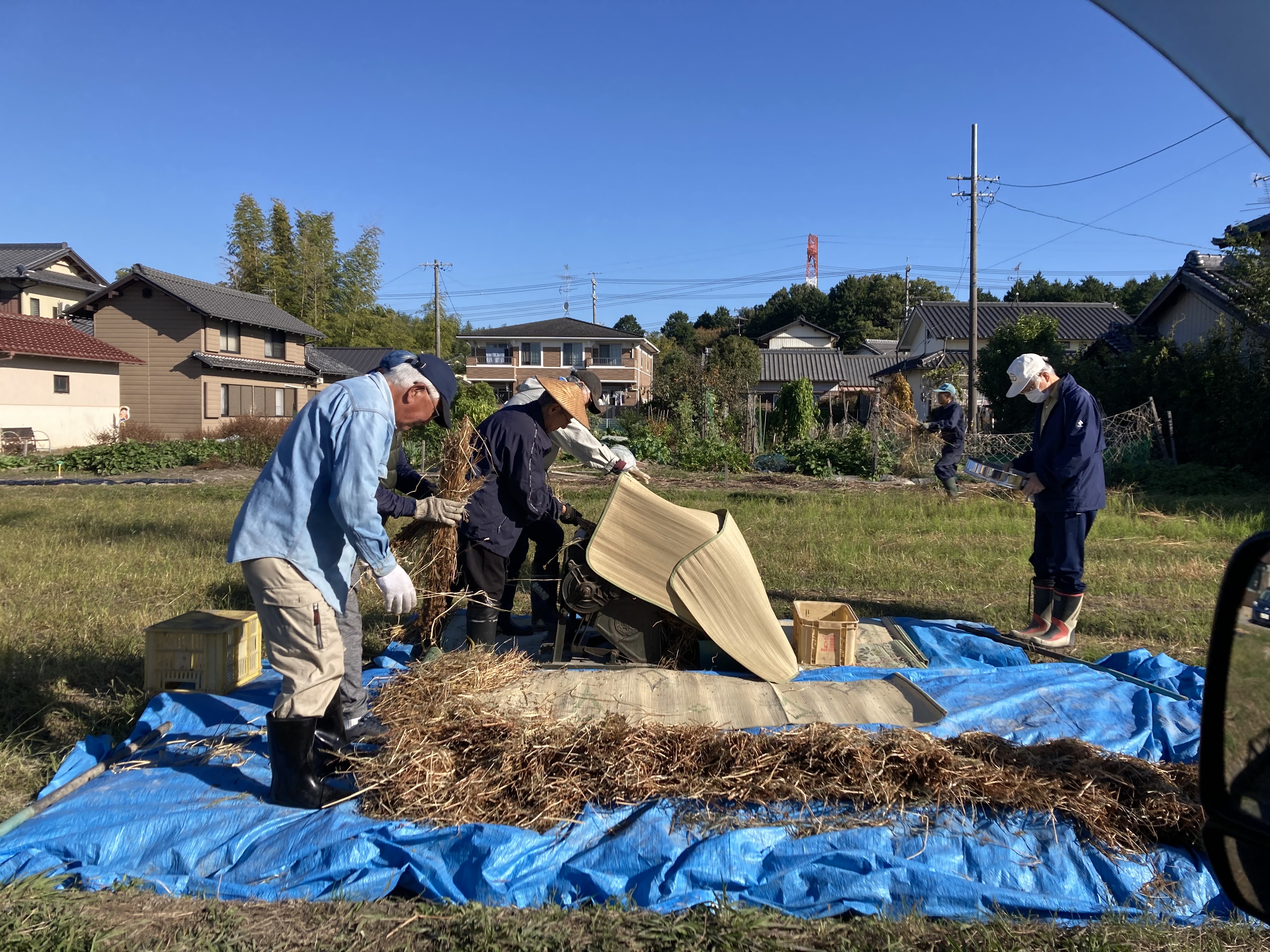 そばの脱穀を見てきました 明治の脱穀機を使っての作業