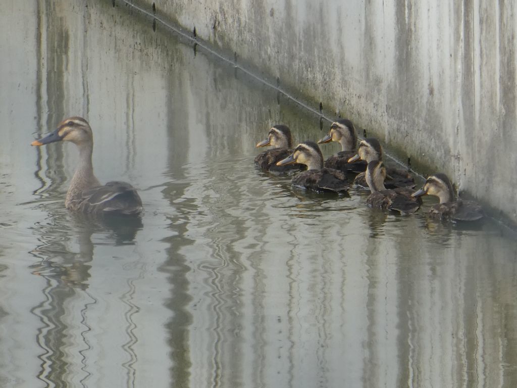 コストコ近くに、カルガモ親子が元気に暮らしています。