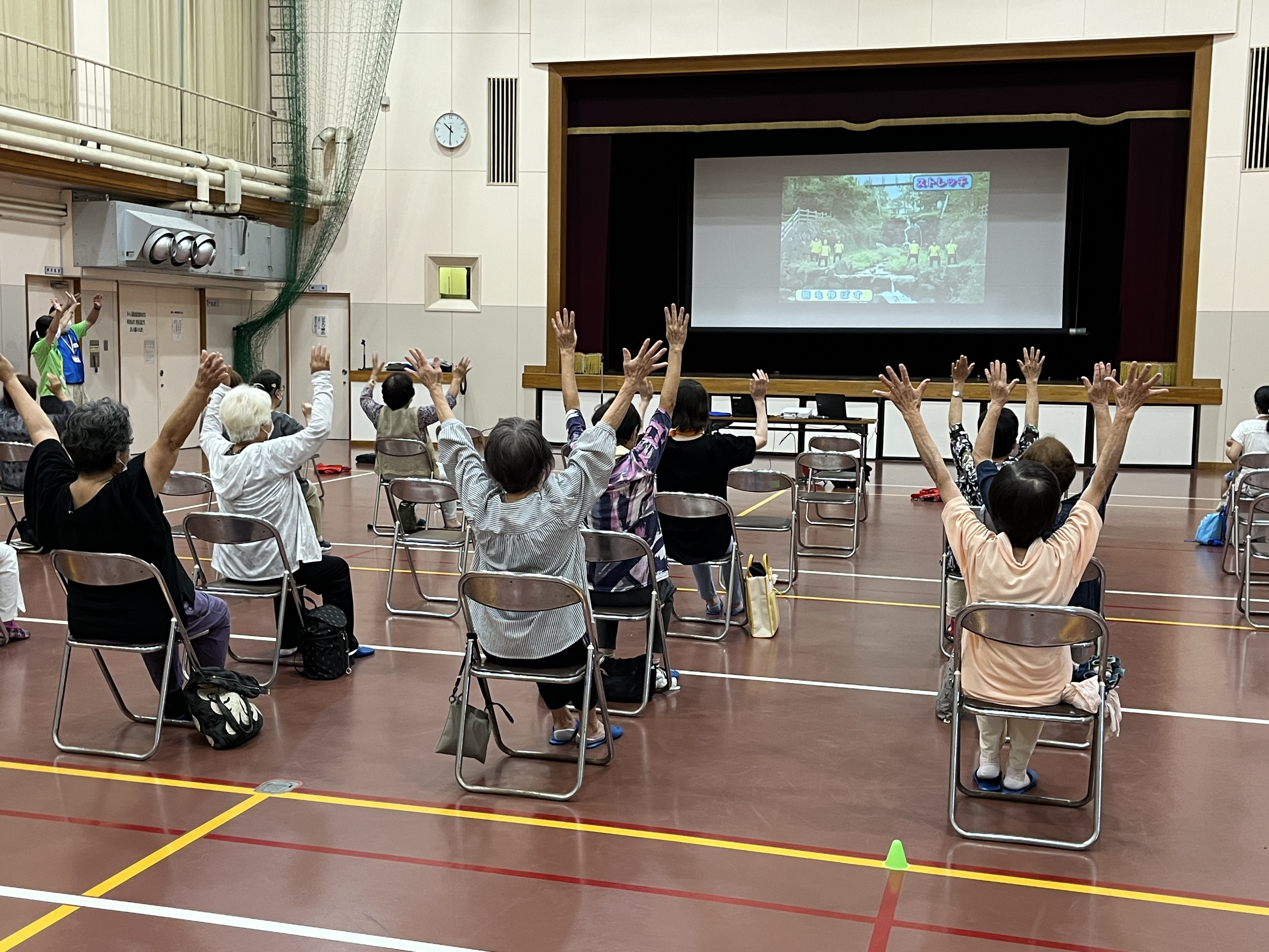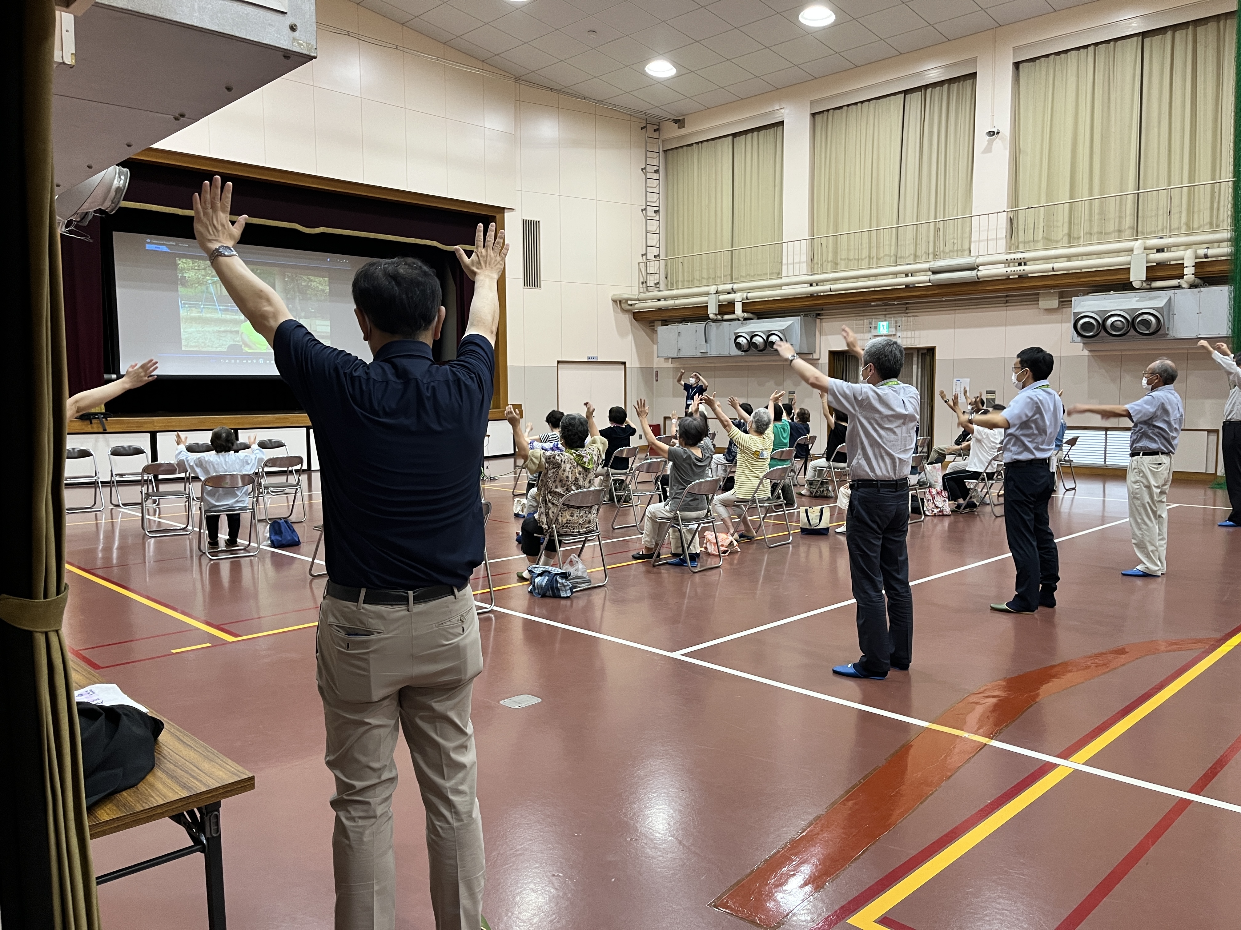 みんなで元気よくもりやま体操をし、